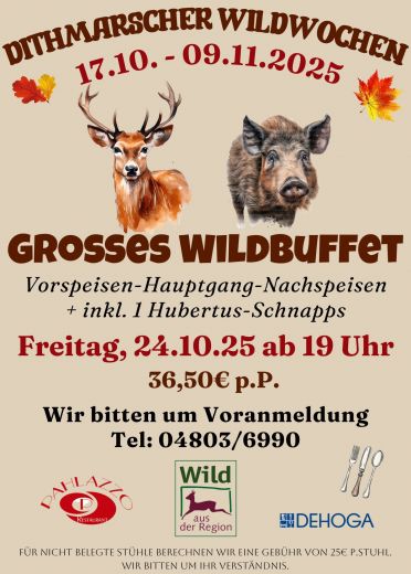 Zusätzlich bieten wir Ihnen am 24.10.2025 unser "Großes Wildbuffet" an: