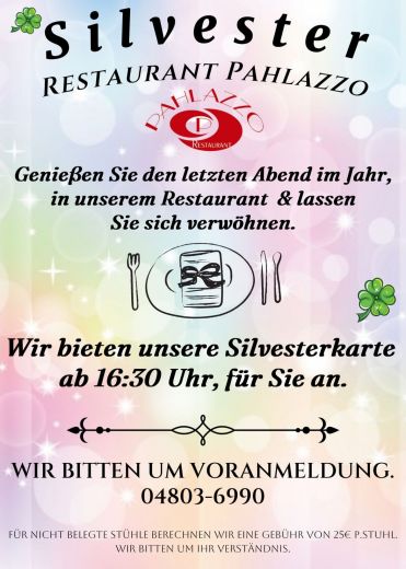 Herzlich willkommen zum Silvester im Restaurant Pahlazzo.